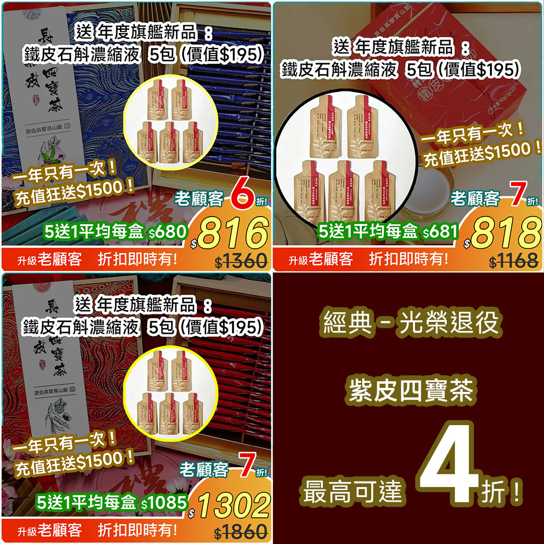 而「鐵皮」長壽四寶茶 , 將繼續保持石斛龍頭地位 , 無限量供貨🙌